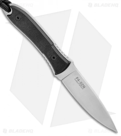 The CRKT Carson F4 is a slim little fixed blade knife that is perfect for everyday neck or pocket carry. This model features an AUS-6M stainless steel blade with a satin finish. The handle scales are made from black G-10 and have a black paracord lanyard. The sheath is made from a black polymer with a pocket clip attached for convenient everyday carry.